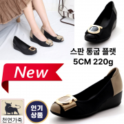 신알지[천연양가죽 수제화]국산 웨지5cm 여성용 가벼운 신축성좋은 신기편한 스판플랫 통굽 푹신하고 말랑말랑한 정장케주얼 발볼편한스판