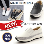슈판다구 국산천연가죽 통굽 여자4cm230g 가볍고 발편한 통굽키높이 발등편한 신기편한밴딩끈 쿠션좋은 말랑한 푹신한 미끄럼방지 유행없는 스니커즈
